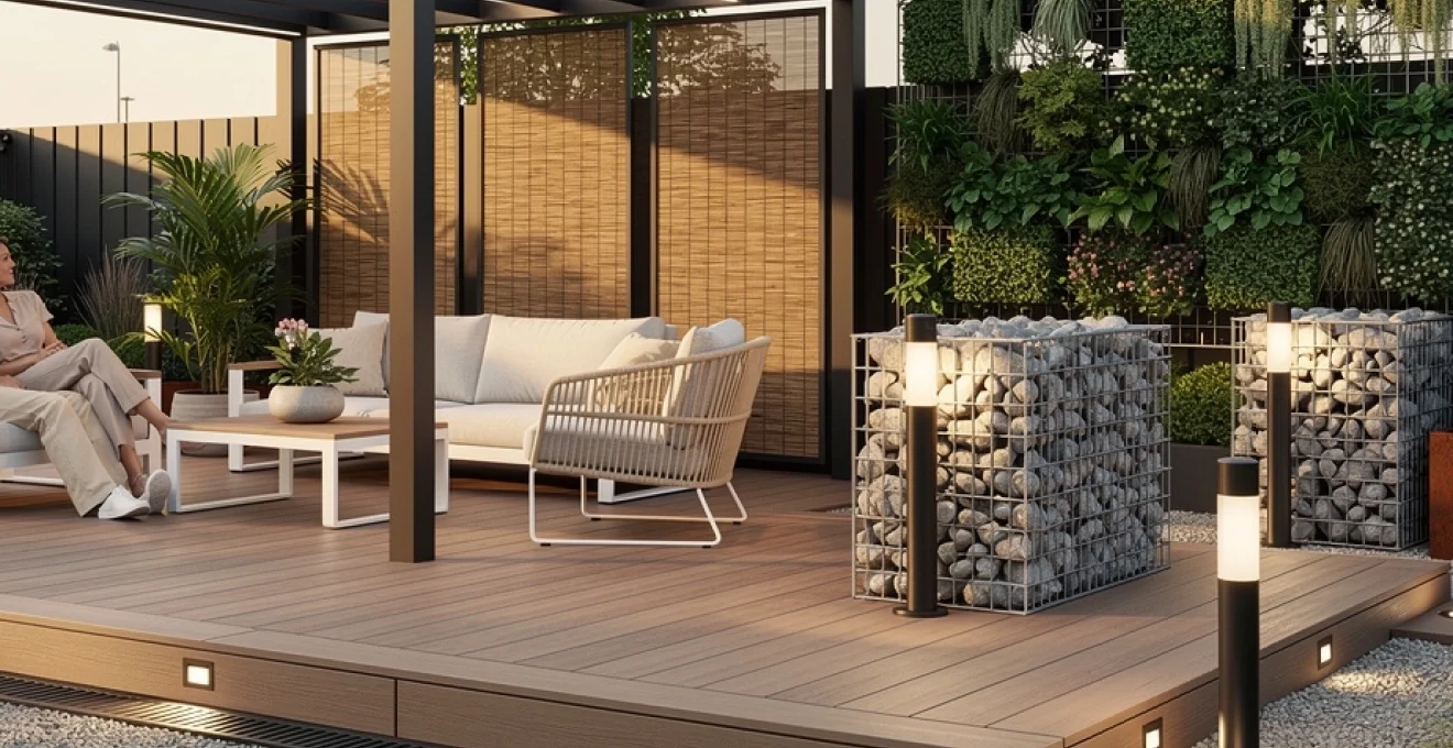 Intégration de gabions décoratifs en acier galvanisé pour délimitation d’espaces